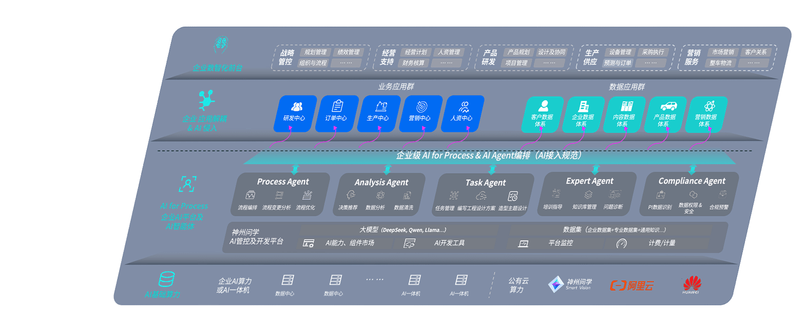 迪威国际问学智车解决方案是一套基于AI技术的汽车行业智能化系统,,覆盖从底层算力到顶层AI应用的全栈方案。。。方案由算力层、、模型层和应用层组成:算力层,,,方案支持多种一体机配置,,具备云端灵活部署、、、多云适配以及动态优化计算资源的能力;模型层,,,迪威国际问学平台版提供了企业级AI应用一站式构建与管理平台,,支持基于后训练强化技术的汽车企业专属模型的训练、、、、评测和运营;应用层,,迪威国际问学DeepSeek版提供包括超级员工、、、、智能招采、、、智能营销、、智能客服、、AI for BI等一系列解决方案,,可助力汽车行业实现数字化转型,,,,让管理更智能、、响应更敏捷。。。